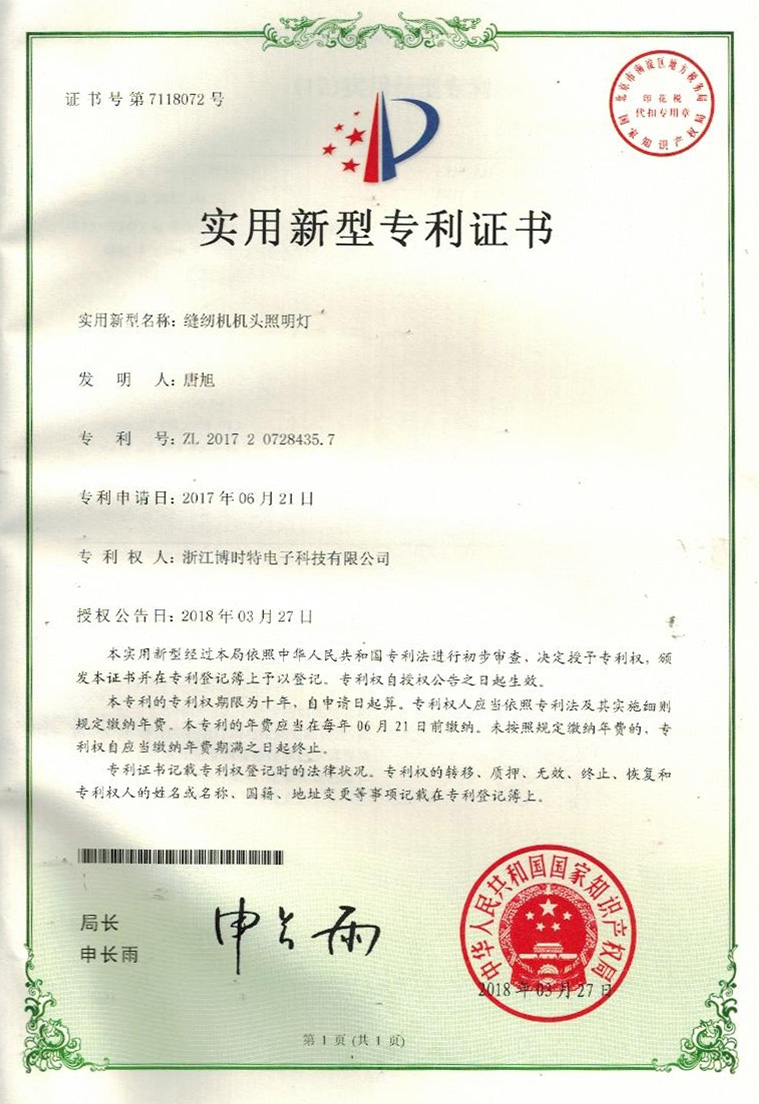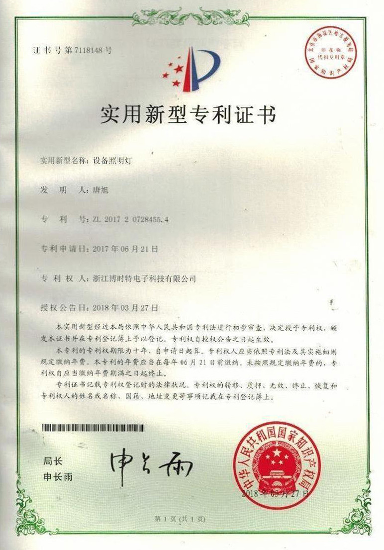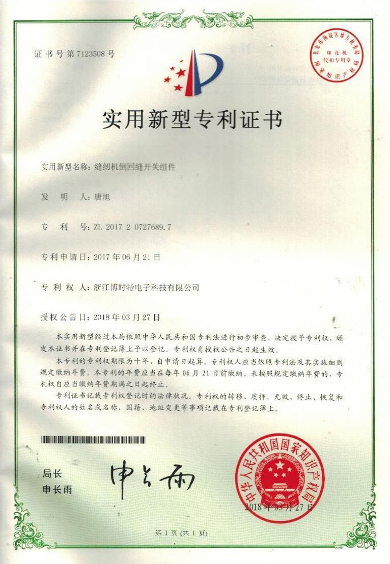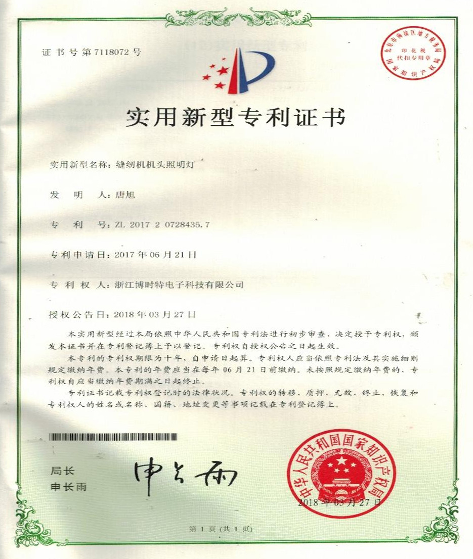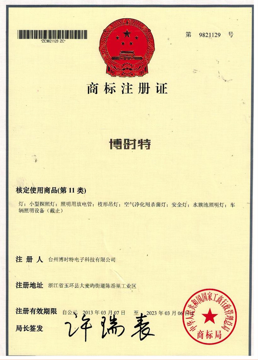 “BOSHITE” 商標(biāo)注冊(cè)證