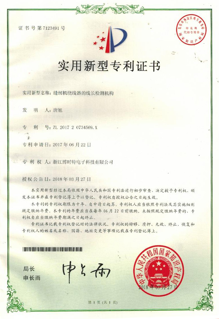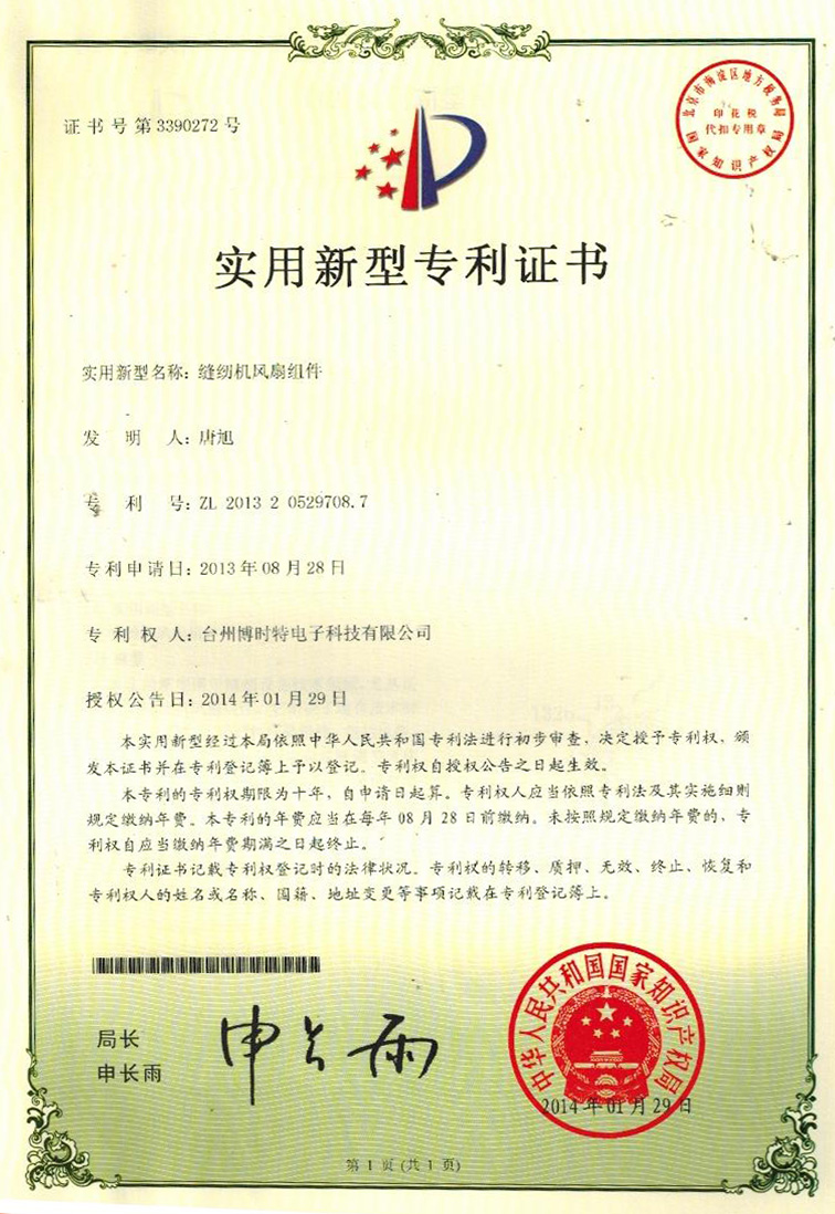 “博時(shí)特” 商標(biāo)注冊(cè)證