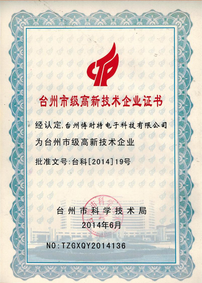 臺(tái)州市高新技術(shù)企業(yè)證書