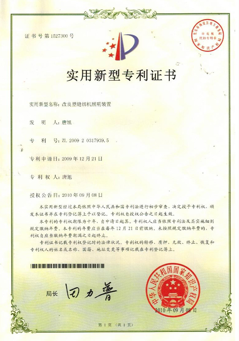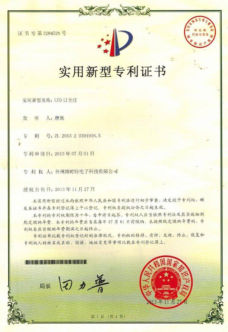 實(shí)用新型專利證書